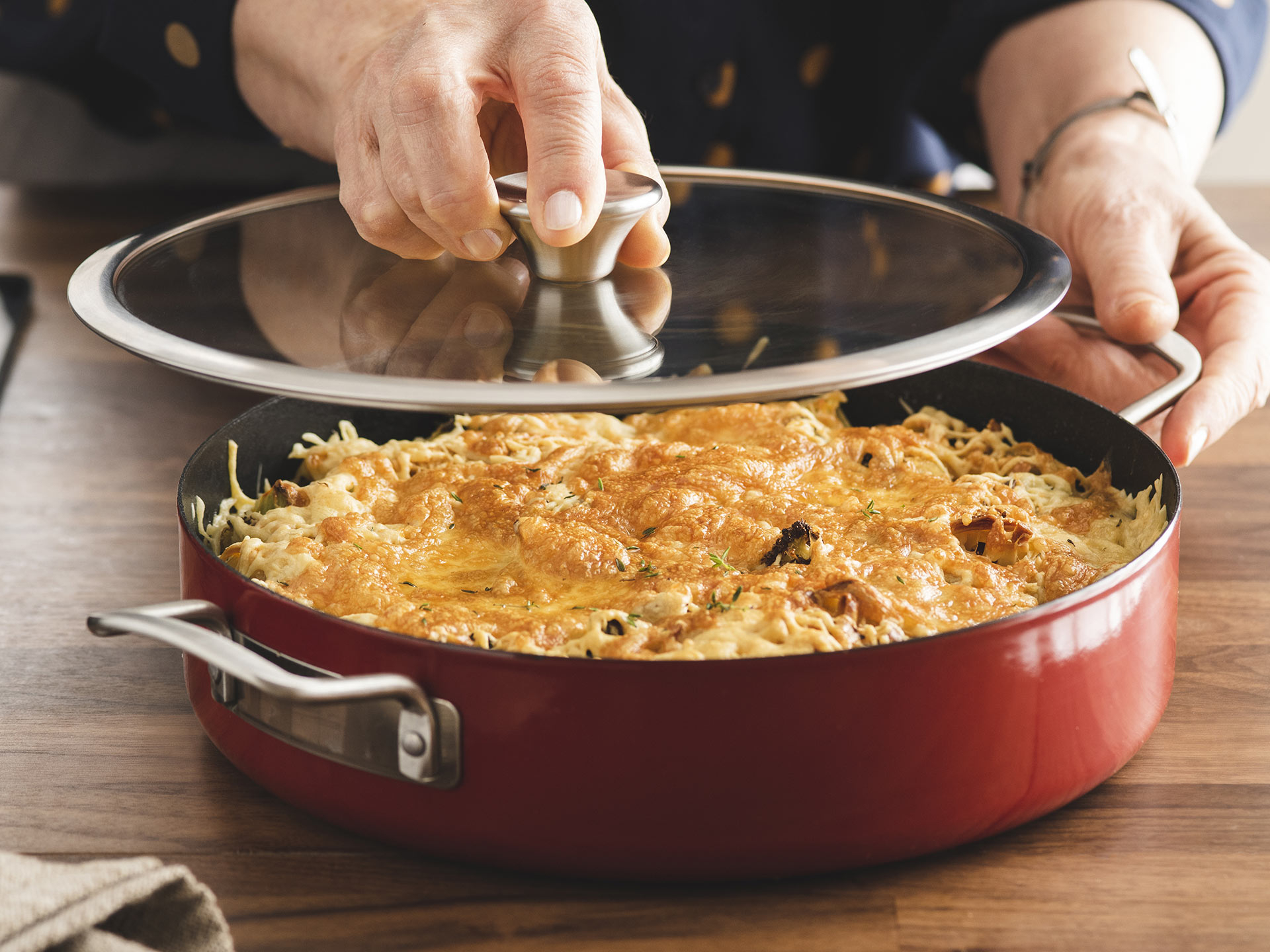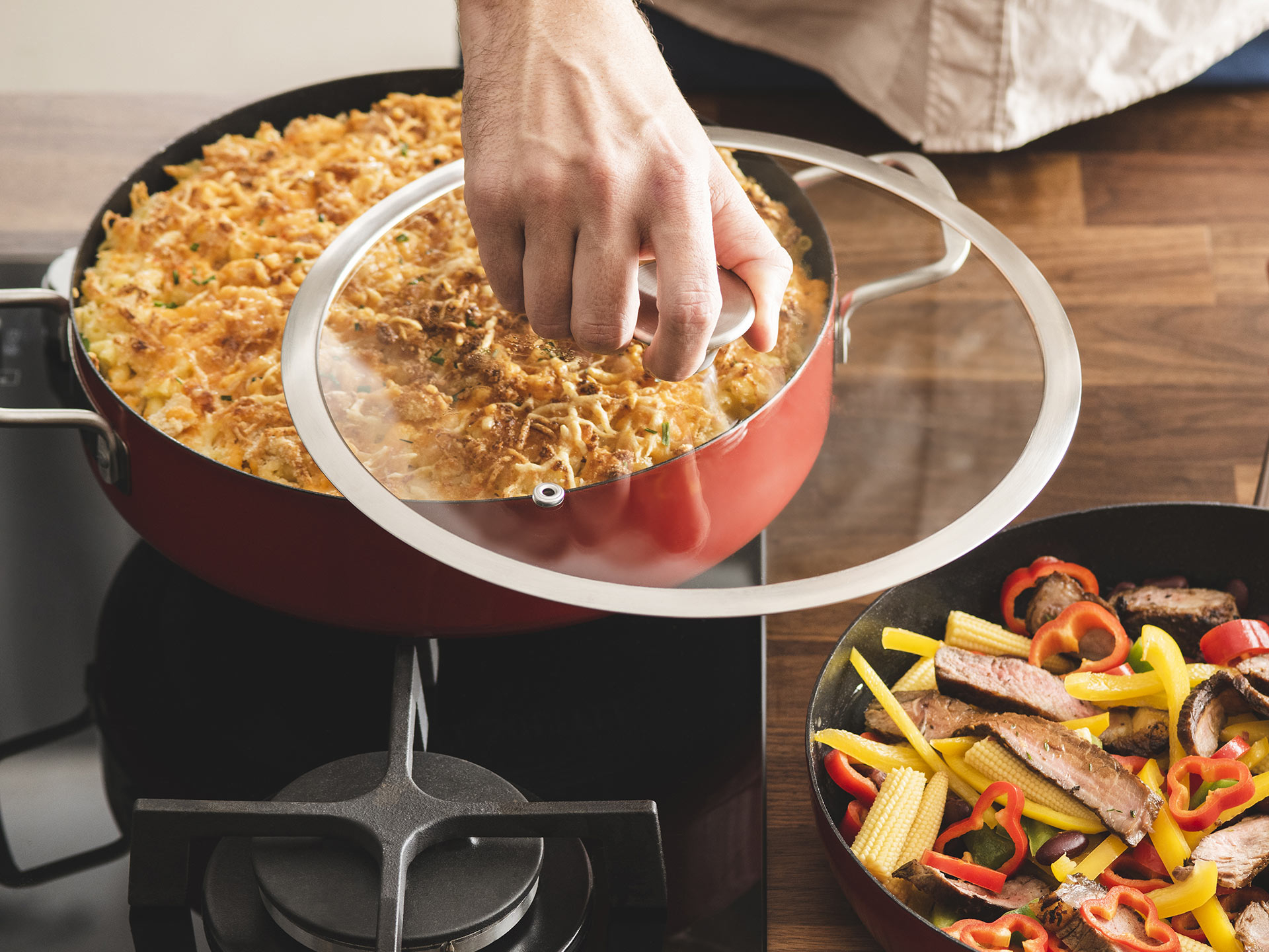 Completeaza vasele preferate din colectia Delimano Titanium Legend cu un capac elegant ce are un nivel inalt de performanta. Acesta are o forma plata pentru o depozitare mai comoda (inaltime doar 3,2 cm) si mainer din otel inoxidabil. Capacul este fabricat din sticla securizata transparenta si poate fi utilizat in cuptor.