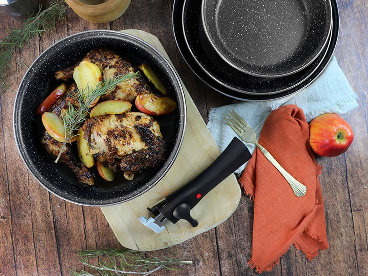 Aceste vase economisesc spatiu si le puteti pune una peste cealalta pentru a maximiza spatiul de depozitare. Au un maner detasabil pentru a le transporta – veti fi uimiti de cat de mult spatiu va fi pe plita si in cuptor (fara maner).